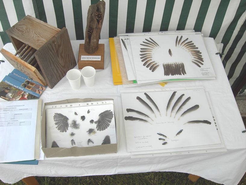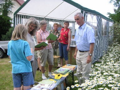 Kinder und Junggebliebene konnten sich an einem Quiz beteiligen, an dessen Lösung viele Spaß hatten. Mehrere große Text- und Fototafeln zur Naturschutzarbeit führten zu Fragen und ausführlichen Gesprächen mit den Besuchern. Für interessierte Bürger lag viel Informationsmaterial bereit. Zu danken ist allen, die zum Erfolg der Präsentation beigetragen haben Impressionen Zum Vergrößern bitte auf die Fotos klicken.