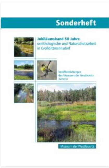 am 28. April 2026 19 Uhr in der Kirche Radeburg Zur Perspektive der Waldmoore bei Großdittmannsdorf, der Quellen im Töpfergrund und der Schutzgebiete in der Region angesichts des geplanten Kiestagebaus Würschnitz-West am 8. Mai 2026 19 Uhr im Gemeindehaus Großdittmannsdorf Nördlich des Polarkreises bei Walen und Eisbergen Dr. Wolfgang Kürner Der Heun, ein Auwaldrest zwischen Bärnsdorf und Berbisdorf Manfred Böhme Gäste sind herzlich willkommen! Jubiläumsband und Chronik über die 50-jährige ornithologische und Naturschutzarbeit Die Moritzburger Kleinkuppenlandschaft und die Waldmoore in der Radeburg-Laußnitzer Heide sind seit mehr als 50 Jahren bevorzugte Beobachtungsgebiete der Großdittmannsdorfer Ornithologen und Naturschutzhelfer. Pünktlich zum Jubiläum liegen zwei Sonderhefte vor, erschienen am Museum der Westlausitz Kamenz. Die reich illustrierte 128-seitige Chronik listet in einer Zeittafel die wichtigsten Ereignisse des letzten Jahrzehnts und darüber hinaus auf. Vergangenes wird reflektiert um die Gegenwart zu meistern und die Zukunft mitzugestalten. Im 168-seitigen Jubiläumsband werden die Ergebnisse der jahrzentewährenden ehrenamtlichen Arbeit vorgestellt: Im Zentrum steht die Bürgerforschung für den Schutz, der Pflege und Entwicklung der Natur rund um Großdittmannsdorf. Der Band widmet sich der Verbesserung der ökologischen Gewässersituation im LSG "Moritzburger Kleinkuppenlandschaft", Ergebnissen der Schwalbenerfassungen sowie dem Thema Umweltbildung, im Rahmen der Arbeit der Kinder- und Jugend-AG sowie zahlreicher Fort- und Weiterbildungen von Erwachsenen. Der zweite Teil des Jubiläumsbandes widmet sich explizit den Waldmooren bei Großdittmannsdorf und Medingen in der Laußnitzer Heide. In einem chronologischen Beitrag wird das bürgerschaftliche Engagement zum Schutz, aber auch die Gefährdung durch den großflächigen Kiesabbau im Einzugsgebiet der Moore vorgestellt. Weitere Beiträge beschäftigen sich kritisch mit der Wasserqualität der Fließgewässer im Pechflussgebiet sowie der Entwicklung von Flora und Fauna in den Moorgebieten sowie deren Umfeld. Die Jubiläumsausgabe (Doppelheft im Schuber 15,- Euro) oder Einzelhefte zu 7,- Euro können über das Museum der Westlausitz Kamenz (Online-Shop unter oder 03578 3746710) erworben werden. Zu den monatlichen Zusammenkünften der Fachgruppe erhalten Sie die Jubiläumsausgabe zum Vorzugspreis von 10,- € ().