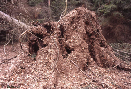 Im Gegensatz zum Wirtschaftswald bietet sich in den Kernbereichen der Schutzgebiete eine einzigartige Gelegenheit, zahlreiche Sturmbiotope zu erhalten.